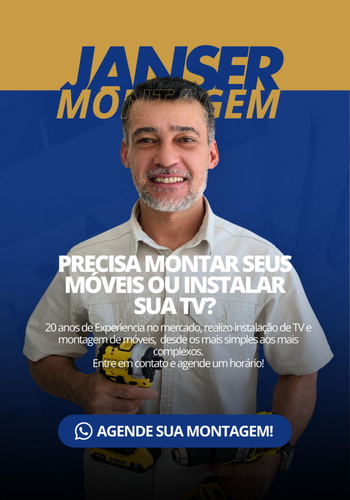 Me chamo Janser, tenho mais de 20 anos de Experiencia no mercado. Realizo montagens de todos os tipos de móveis, desde os mais simples aos mais complexos.